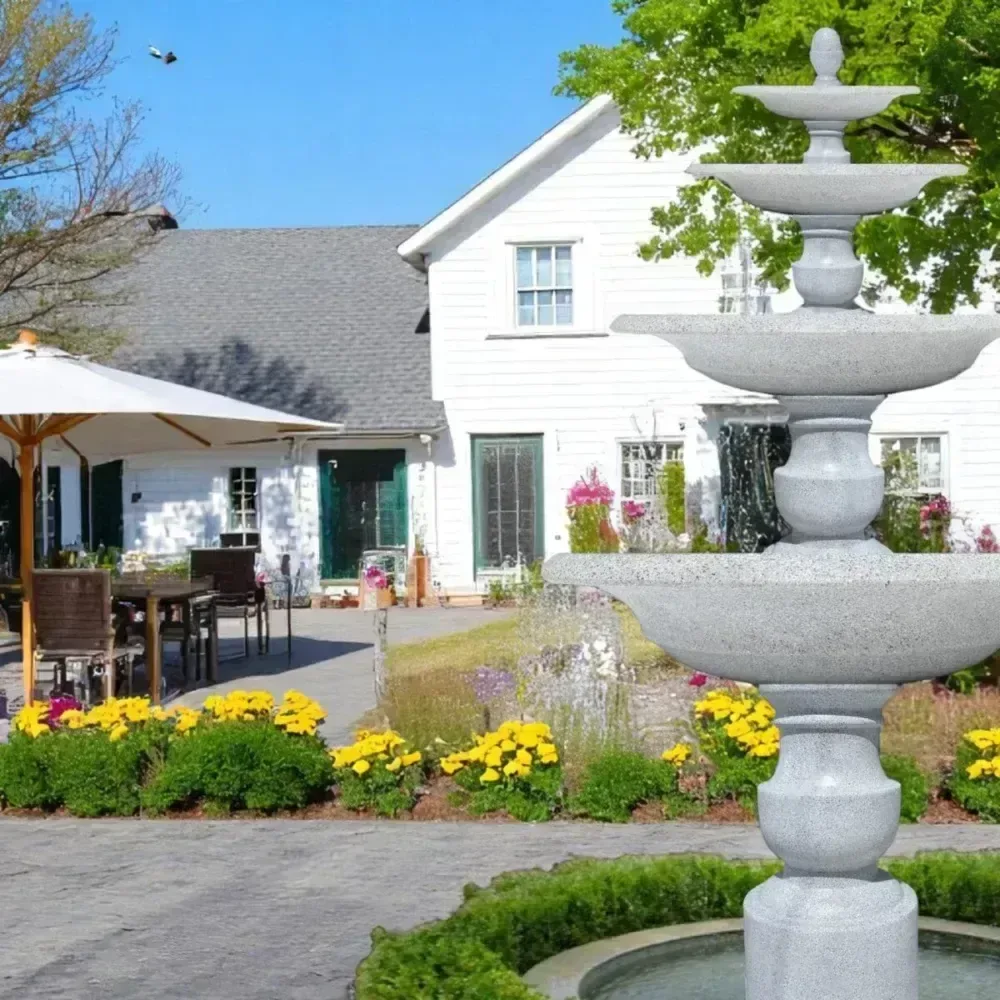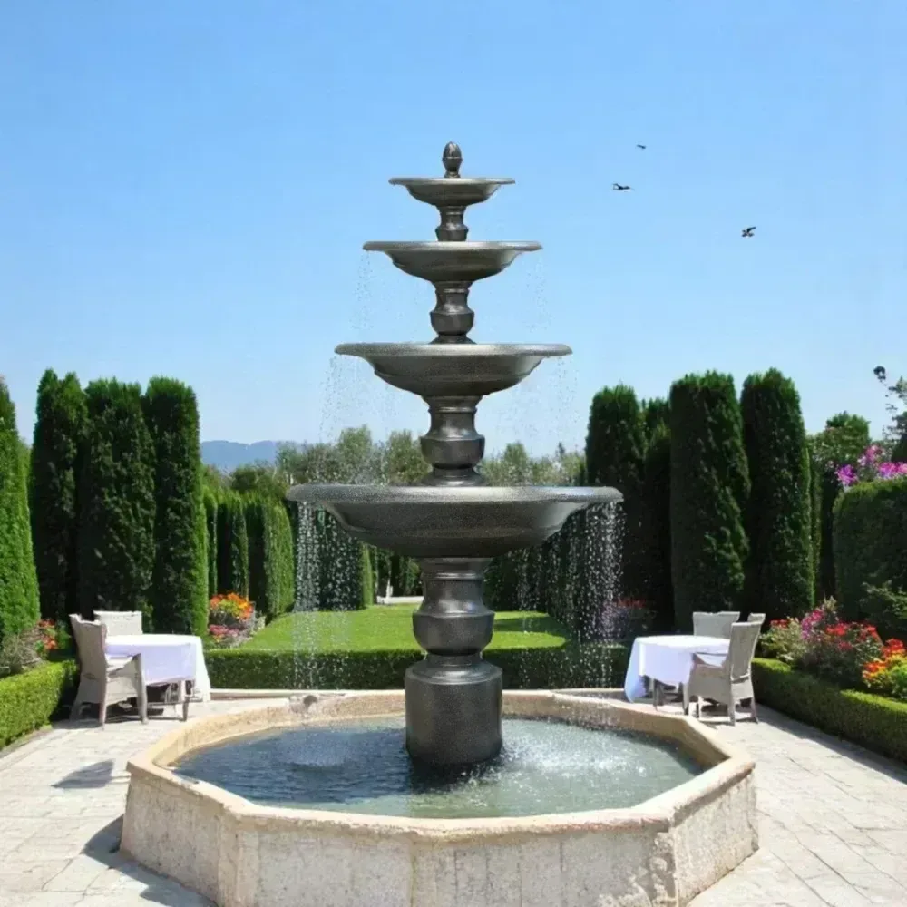 Đài phun nước cỡ lớn 4 tầng Kum Wonderful là điểm nhấn tuyệt vời cho bất kỳ sân vườn hay trang trại nào. Với thiết kế tinh xảo, đài phun gồm bốn tầng nước chảy liên tục từ trên xuống, tạo nên âm thanh êm dịu và không gian thư giãn. Mỗi tầng mang một nét đẹp riêng, kết hợp hài hòa giữa nghệ thuật hiện đại và vẻ đẹp tự nhiên.