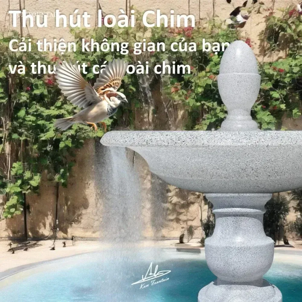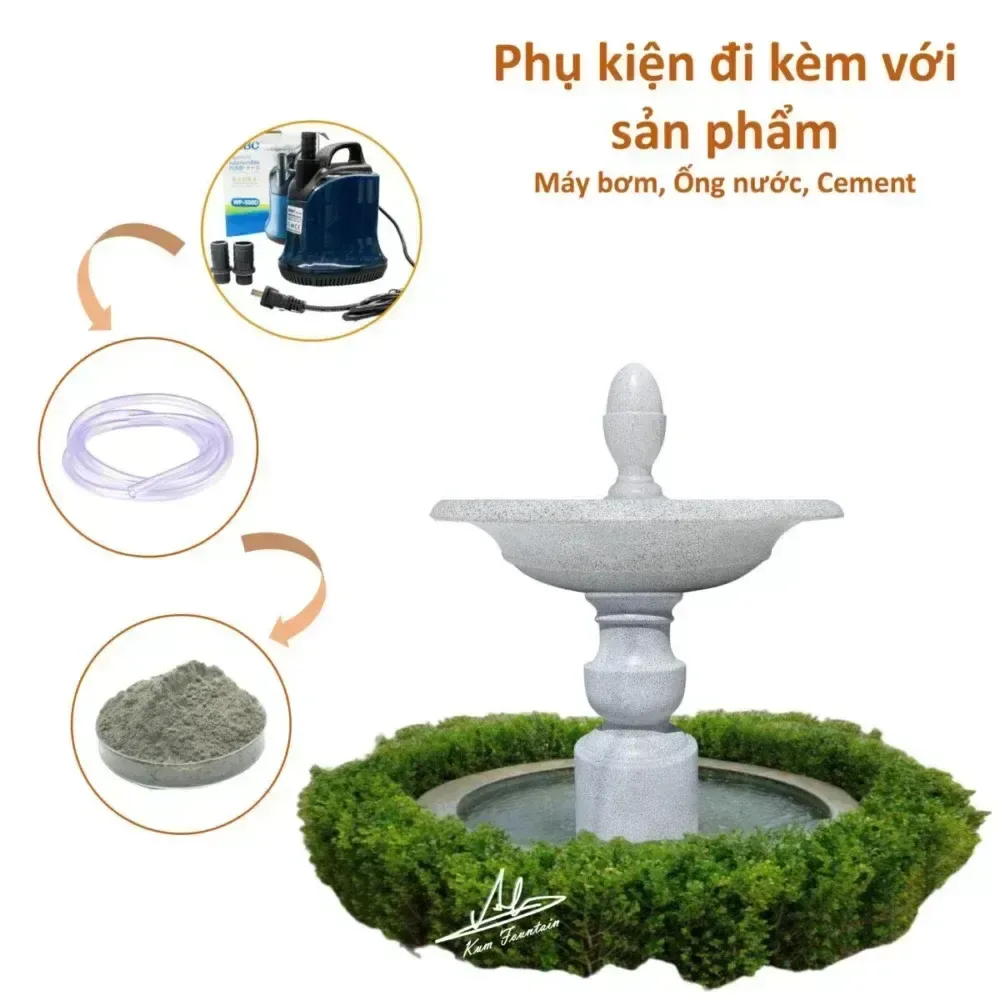 Đài phun nước cỡ lớn 1 tầng Kum Wonderful là điểm nhấn tuyệt vời cho bất kỳ sân vườn hay trang trại nào. Với thiết kế tinh xảo, đài phun gồm bốn tầng nước chảy liên tục từ trên xuống, tạo nên âm thanh êm dịu và không gian thư giãn. Mỗi tầng mang một nét đẹp riêng, kết hợp hài hòa giữa nghệ thuật hiện đại và vẻ đẹp tự nhiên.