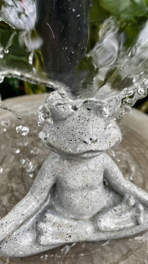 Tạo hình ếch thiền tinh tế, kết hợp cùng hiệu ứng nước phun hình vòm, mang đến cảm giác mềm mại và vui nhộn.