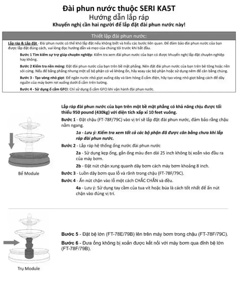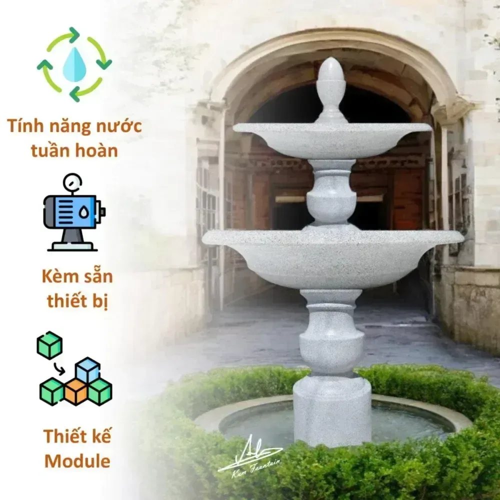 Đài Phun Nước Mini 2 Tầng Cao 94 x D50 cm. Không có bệ
