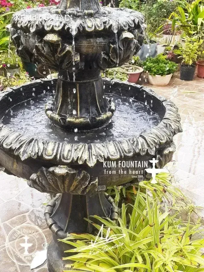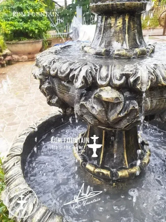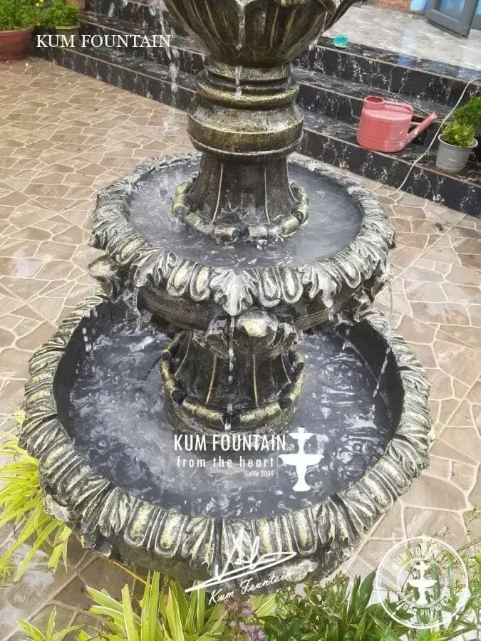 - Đổ đầy nước vào các tầng của đài phun